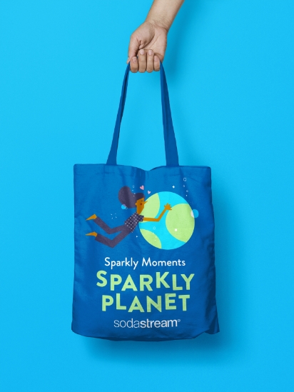We also included messaging and illustrations to highlight SodaStream's environmental focus. The style of the illustrations is quirky, dynamic and playful, with the feeling of 'floating worlds' in which everyone is lifted by the joy of the sparkling water.